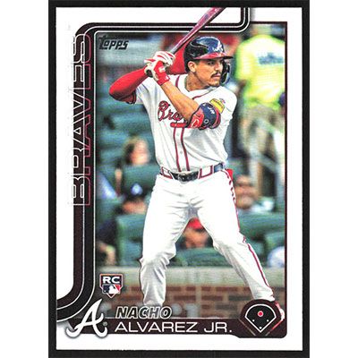 This is a 2025 Topps Nacho Alvarez Jr. baseball card. The card is #223 and pictures show condition.