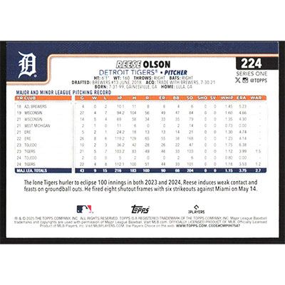 This is a 2025 Topps Reese Olson baseball card. The card is #224 and pictures show condition.