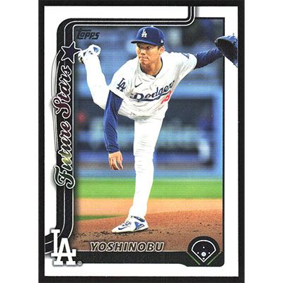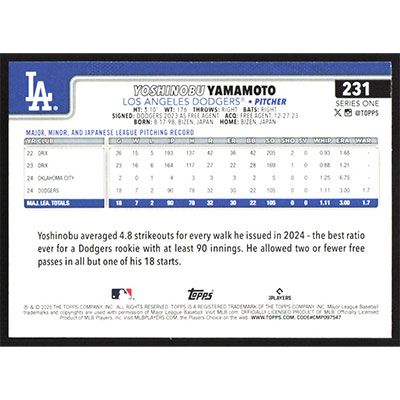 This is a 2025 Topps Yoshinobu Yamamoto Future Stars baseball card. The card is #231 and pictures show condition.