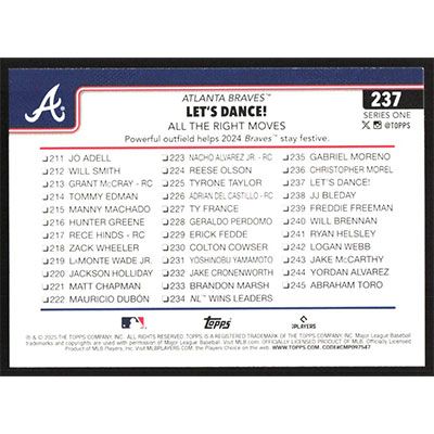 This is a 2025 Topps Marcell Ozuna Team Celebration Checklist baseball card. The card is #237 and pictures show condition.