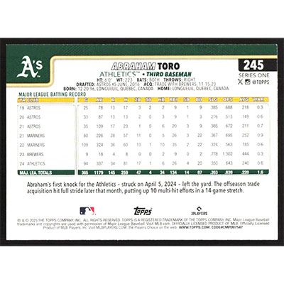This is a 2025 Topps Abraham Toro baseball card. The card is #245 and pictures show condition.