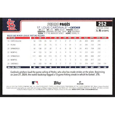 This is a 2025 Topps Pedro Pages baseball card. The card is #252 and pictures show condition.