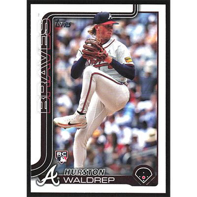 This is a 2025 Topps Hurston Waldrep baseball card. The card is #253 and pictures show condition.