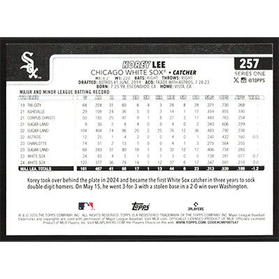 This is a 2025 Topps Korey Lee baseball card. The card is #257 and pictures show condition.