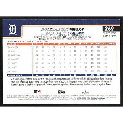 This is a 2025 Topps Justyn-Henry Malloy baseball card. The card is #269 and pictures show condition.