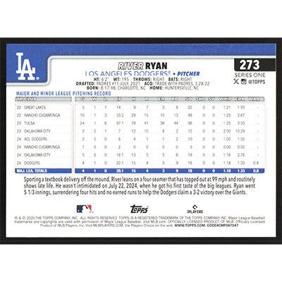 This is a 2025 Topps River Ryan baseball card. The card is #273 and pictures show condition.