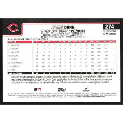 This is a 2025 Topps Blake Dunn baseball card. The card is #274 and pictures show condition.