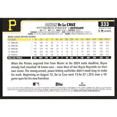 This is a 2025 Topps Bryan De La Cruz baseball card. The card is #333 and pictures show condition.