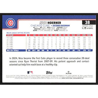 This is a 2025 Topps Nico Hoerner baseball card. The card is #38 and pictures show condition.