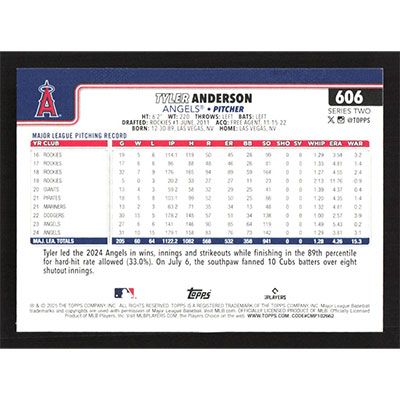 This is a 2025 Topps Tyler Anderson baseball card. The card is #606 and pictures show condition.