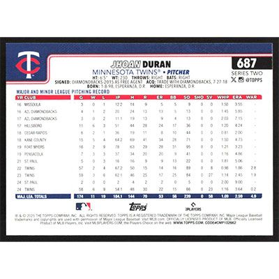 This is a 2025 Topps Jhoan Duran baseball card. The card is #687 and pictures show condition.