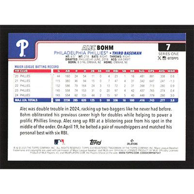 This is a 2025 Topps Alec Bohm baseball card. The card is #7 and pictures show condition.