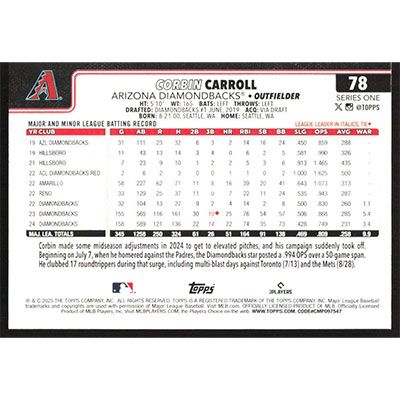 This is a 2025 Topps Corbin Carroll baseball card. The card is #78 and pictures show condition.