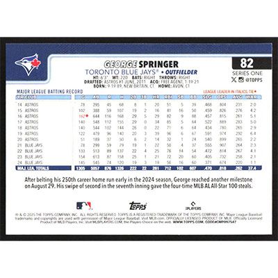 This is a 2025 Topps George Springer baseball card. The card is #82 and pictures show condition.