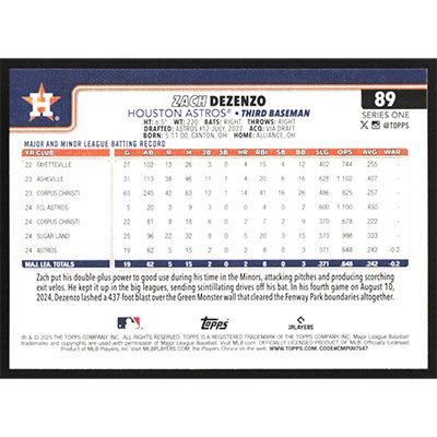 This is a 2025 Topps Zach Dezenzo baseball card. The card is #89 and pictures show condition.