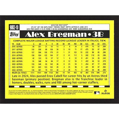This is a 2025 Topps '90 Series 2 Alex Bregman baseball card. The card is #90B2-10 and pictures show condition.