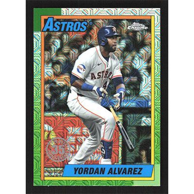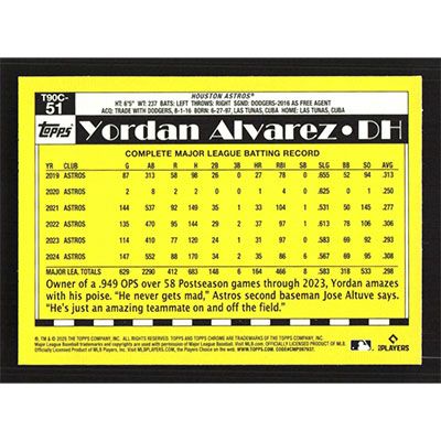 This is a 2025 Topps '90 Silver Pack Chrome Yordan Alvarez baseball card. The card is #T90C-51 and pictures show condition.