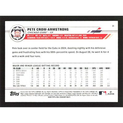 This is a 2025 Topps All-Star Game Pete Crow-Armstrong baseball card. The card is #31 and pictures show condition.