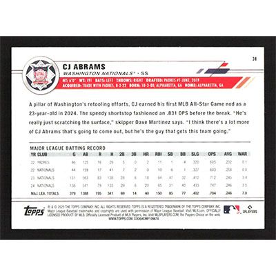This is a 2025 Topps All-Star Game CJ Abrams baseball card. The card is #38 and pictures show condition.