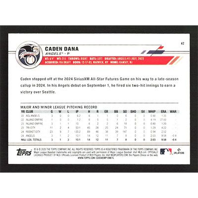 This is a 2025 Topps All-Star Game Caden Dana baseball card. The card is #42 and pictures show condition. Team(s): Los Angeles Angels Rookie Card (RC)
