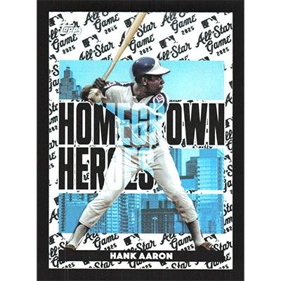 This is a 2025 Topps All-Star Game Homegrown Heroes Hank Aaron baseball card. The card is #HH-25 and pictures show condition.
