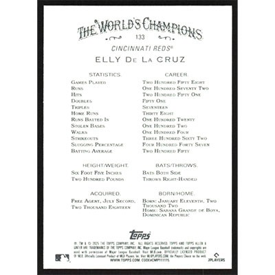 This is a 2025 Topps Allen & Ginter Elly De La Cruz baseball card. The card is #133 and pictures show condition.