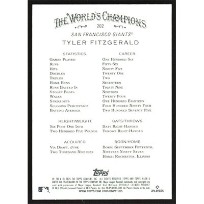 This is a 2025 Topps Allen & Ginter Tyler Fitzgerald baseball card. The card is #202 and pictures show condition.
