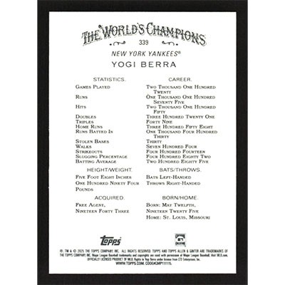 This is a 2025 Topps Allen & Ginter Yogi Berra short print baseball card. The card is #339 and pictures show condition.