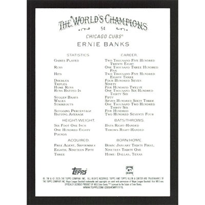 This is a 2025 Topps Allen & Ginter Ernie Banks baseball card. The card is #54 and pictures show condition.