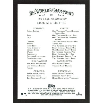 This is a 2025 Topps Allen & Ginter Chrome Mookie Betts baseball card. The card is #80 and pictures show condition.