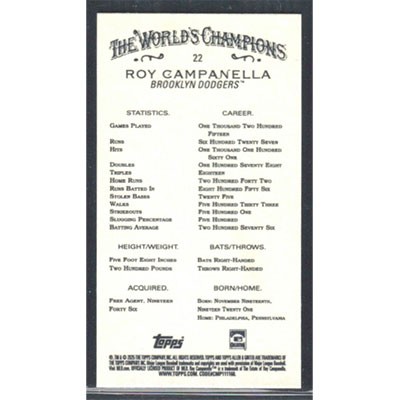 This is a 2025 Topps Allen & Ginter Mini Roy Campanella baseball card. The card is #22 and pictures show condition.
