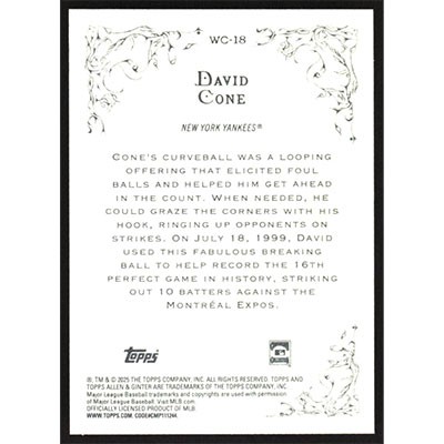 This is a 2025 Topps Allen & Ginter Wicked Curves David Cone baseball card. The card is #WC-18 and pictures show condition.