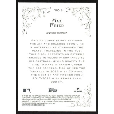 This is a 2025 Topps Allen & Ginter Wicked Curves Max Fried baseball card. The card is #WC-9 and pictures show condition.