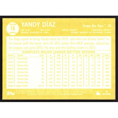 This is a 2025 Topps Archives Yandy Diaz baseball card. The card is #16 and pictures show condition.