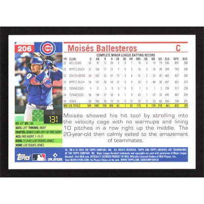 This is a 2025 Topps Archives Moises Ballesteros baseball card. The card is #206 and pictures show condition.