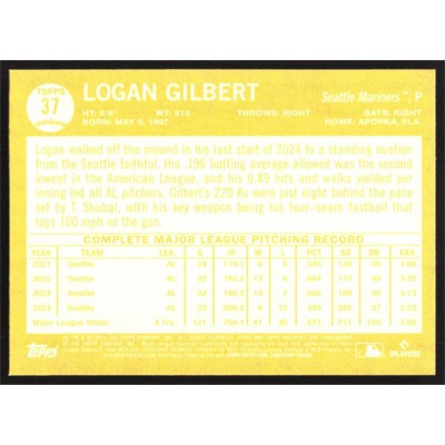 This is a 2025 Topps Archives Logan Gilbert baseball card. The card is #37 and pictures show condition.