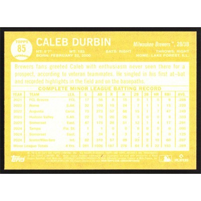 This is a 2025 Topps Archives Caleb Durbin baseball card. The card is #85 and pictures show condition.