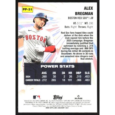 This is a 2025 Topps Chrome Update Power Players Alex Bregman baseball card. The card is #PP-31 and pictures show condition.