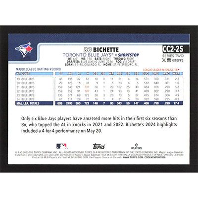 This is a 2025 Topps Companion Cards Series 2 Bo Bichette baseball card. The card is #CC2-25 and pictures show condition.