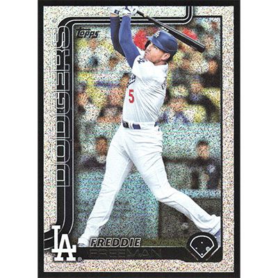 This is a 2025 Topps Sandglitter Freddie Freeman baseball card. The card is #239 and pictures show condition.