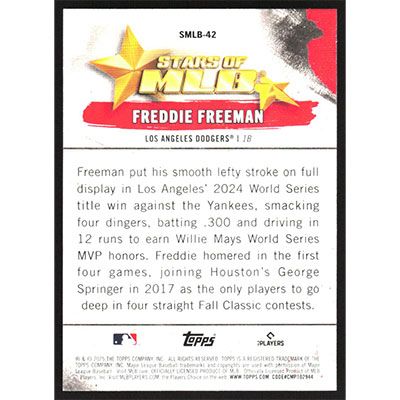 This is a 2025 Topps Stars of MLB Freddie Freeman baseball card. The card is #SMLB-42 and pictures show condition.