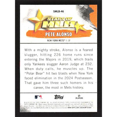 This is a 2025 Topps Stars of MLB Pete Alonso baseball card. The card is #SMLB-46 and pictures show condition.