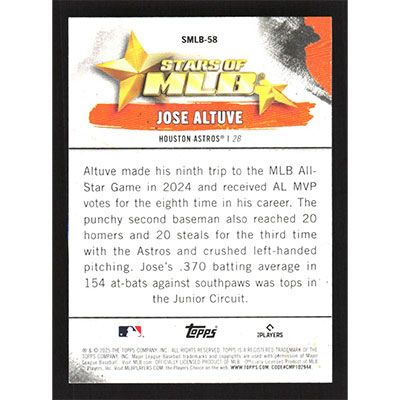 This is a 2025 Topps Stars of MLB Jose Altuve baseball card. The card is #SMLB-58 and pictures show condition.