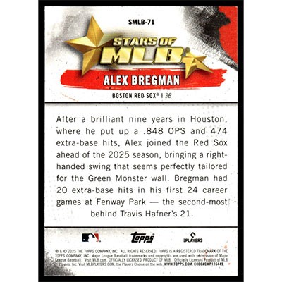 This is a 2025 Topps Update Stars of MLB Alex Bregman baseball card. The card is #SMLB-71 and pictures show condition.
