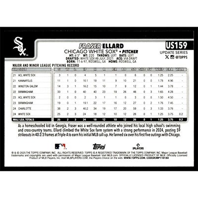 This is a 2025 Topps Update Fraser Ellard baseball card. The card is #US159 and pictures show condition.