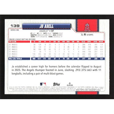 This is a 2026 Topps Jo Adell baseball card. The card is #139 and pictures show condition.