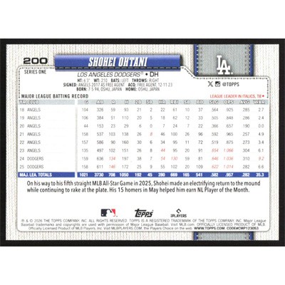 This is a 2026 Topps Shohei Ohtani baseball card. The card is #200 and pictures show condition.