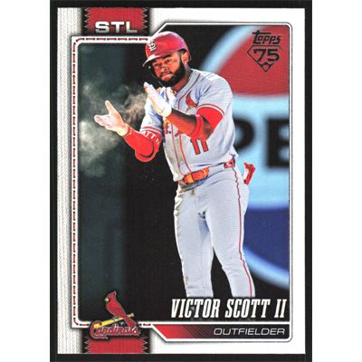 This is a 2026 Topps Victor Scott II baseball card. The card is #221 and pictures show condition.