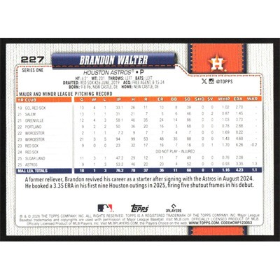 This is a 2026 Topps Brandon Walter baseball card. The card is #227 and pictures show condition.