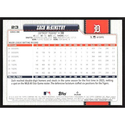 This is a 2026 Topps Zach McKinstry baseball card. The card is #23 and pictures show condition.